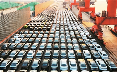 數(shù)千輛國產(chǎn)新能源汽車停放在山東港口青島港大港碼頭,等待裝載出口。 梁 超 攝