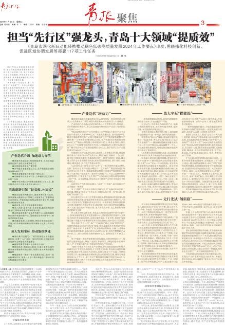 堅(jiān)決扛牢先行區(qū)建設(shè)“強(qiáng)龍頭”使命,全市綠色低碳高質(zhì)量發(fā)展態(tài)勢(shì)更加強(qiáng)勁。今年以來(lái),市發(fā)展改革委發(fā)揮市綠色低碳高質(zhì)量發(fā)展先行區(qū)建設(shè)領(lǐng)導(dǎo)小組辦公室作用,推動(dòng)召開(kāi)領(lǐng)導(dǎo)小組會(huì)議,健全督查、推進(jìn)、信息、考核等工作機(jī)制,印發(fā)《青島市深化新舊動(dòng)能轉(zhuǎn)換推動(dòng)綠色低碳高質(zhì)量發(fā)展2024年工作要點(diǎn)》,推進(jìn)117項(xiàng)年度重點(diǎn)任務(wù),累計(jì)出臺(tái)70余項(xiàng)支持政策,深化省先行區(qū)建設(shè)綜合性區(qū)域、產(chǎn)業(yè)園區(qū)和企業(yè)三類試點(diǎn)實(shí)施,高質(zhì)量推進(jìn)省市綠色低碳高質(zhì)量發(fā)展重點(diǎn)項(xiàng)目建設(shè),工業(yè)互聯(lián)網(wǎng)等8個(gè)集群獲評(píng)省支柱型雁陣集群。截至目前,國(guó)家、省賦予青島的先行先試任務(wù)過(guò)半取得突破性進(jìn)展,年度重點(diǎn)工作扎實(shí)推進(jìn),相關(guān)工作獲《經(jīng)濟(jì)日?qǐng)?bào)》《大眾日?qǐng)?bào)》等媒體刊發(fā)。