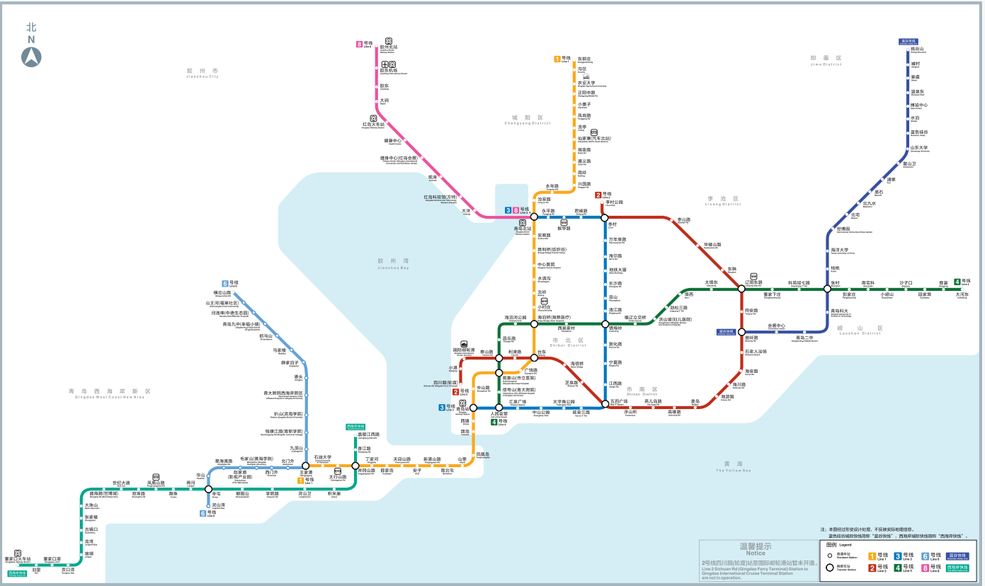 青島地鐵已開通運(yùn)營(yíng)線路8條,共設(shè)運(yùn)營(yíng)車站169座(換乘站不重復(fù)計(jì)入),其中青島地鐵1號(hào)線(含7號(hào)線一期),共設(shè)運(yùn)營(yíng)車站41座;青島地鐵2號(hào)線一期,共設(shè)運(yùn)營(yíng)車站22座;青島地鐵3號(hào)線,共設(shè)運(yùn)營(yíng)車站22座;青島地鐵4號(hào)線,共設(shè)運(yùn)營(yíng)車站25座;青島地鐵6號(hào)線一期,共設(shè)運(yùn)營(yíng)車站21座;青島地鐵8號(hào)線北段,共設(shè)運(yùn)營(yíng)車站11座;藍(lán)谷快線,共設(shè)運(yùn)營(yíng)車站21座;西海岸快線,共設(shè)運(yùn)營(yíng)車站23座(青島地鐵線網(wǎng)圖見下圖)。