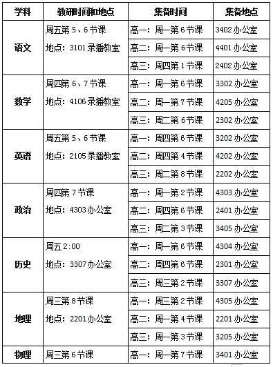 山東省青島第六中學(xué)2024—2025學(xué)年度第一學(xué)期學(xué)科教研和集備活動安排