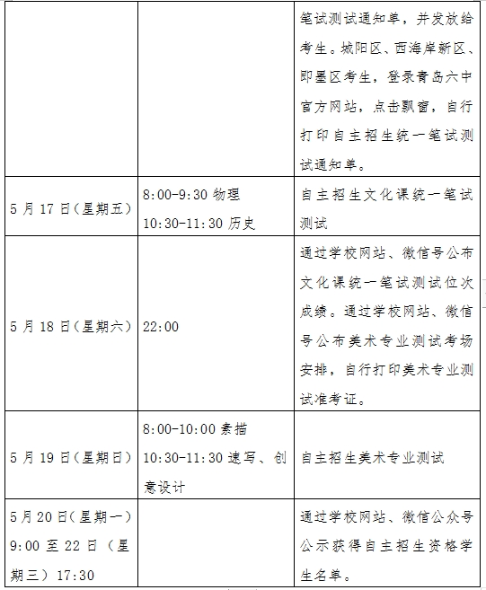 自主招生美術(shù)專業(yè)測(cè)試地址:青島六中。