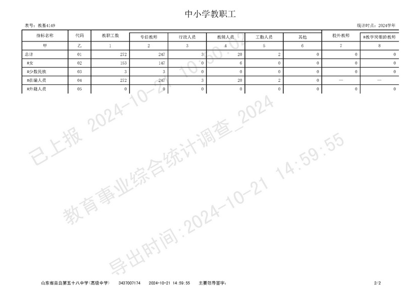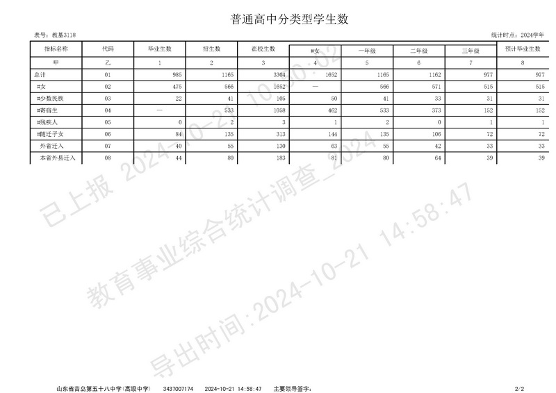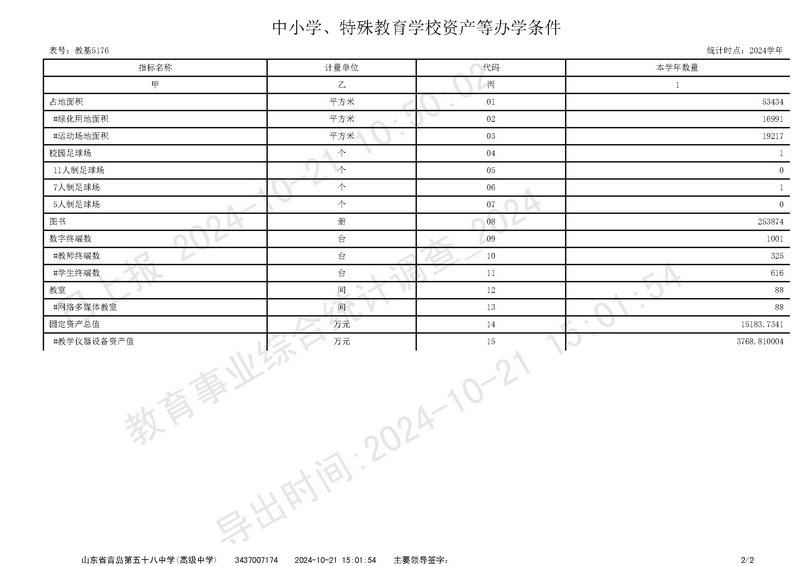 青島五十八中2024年在校師生、辦學(xué)條件數(shù)據(jù)