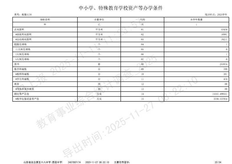 青島五十八中2025年在校師生、辦學(xué)條件數(shù)據(jù)