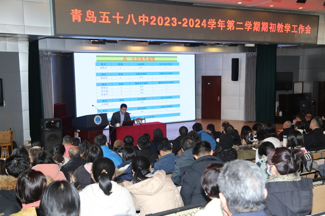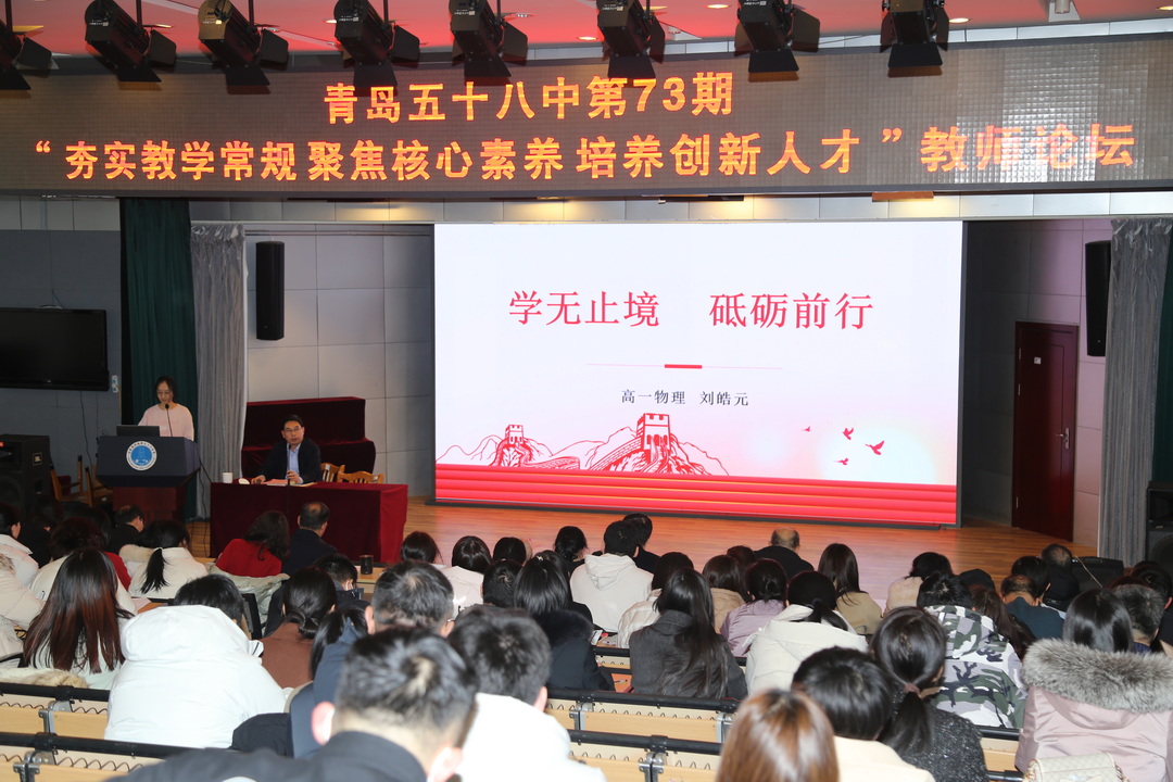 日月春暉漸,光華萬物新。2024年2月25日,青島五十八中2023-2024學(xué)年第二學(xué)期期初教學(xué)工作會(huì)暨第73期教師論壇在報(bào)告廳隆重舉行。會(huì)議的主題為: 夯實(shí)教學(xué)常規(guī) 聚焦核心素養(yǎng) 培育創(chuàng)新人才。教育集團(tuán)核心校、高新校區(qū)、附屬棗山中學(xué)干部教師等300余人參加會(huì)議。會(huì)議由核心校副校長(zhǎng)封強(qiáng)主持。
