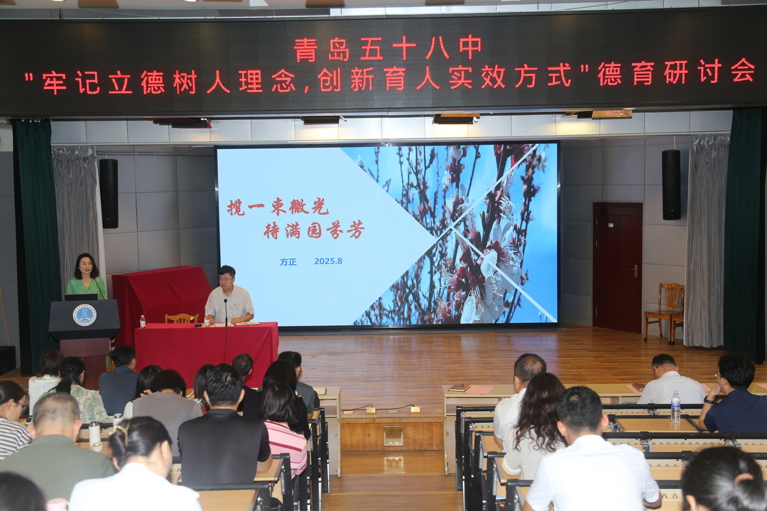 為貫徹落實立德樹人根本任務,表彰德育先進個人,提升德育工作水平,8月13日上午,青島五十八中召開“牢記立德樹人理念,創(chuàng)新育人實效方式”德育研討會,會議由袁忠珂副校長主持。