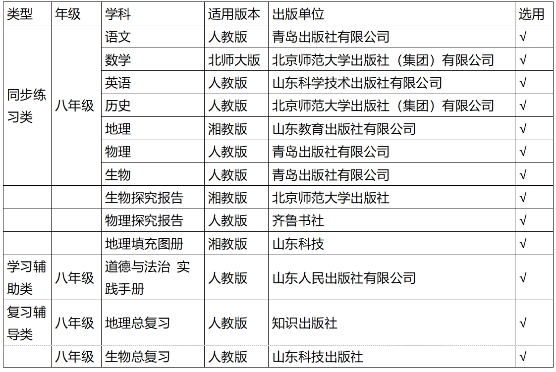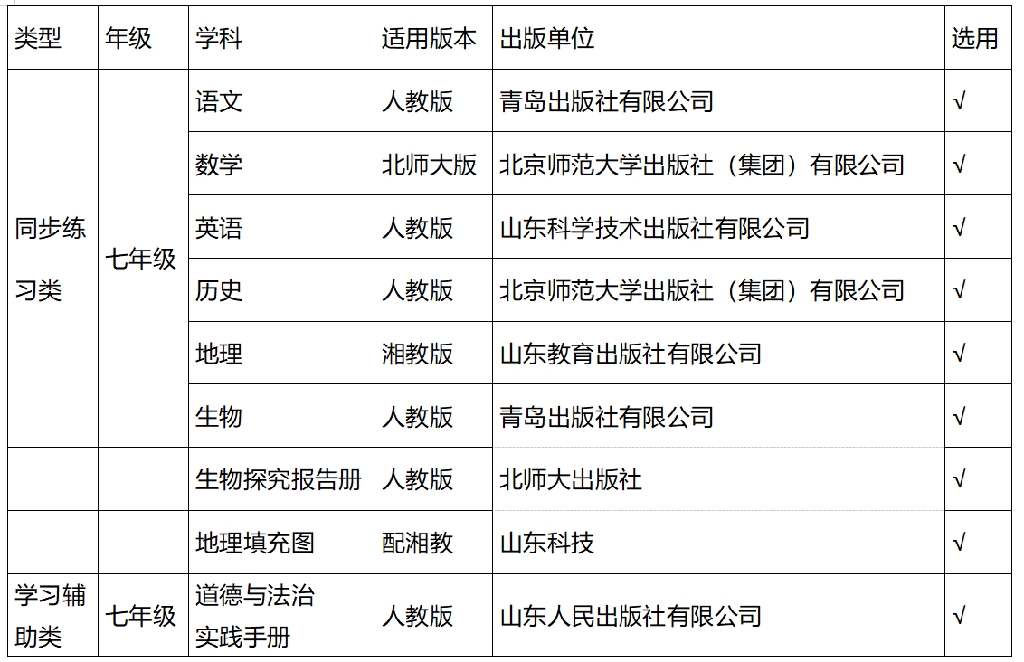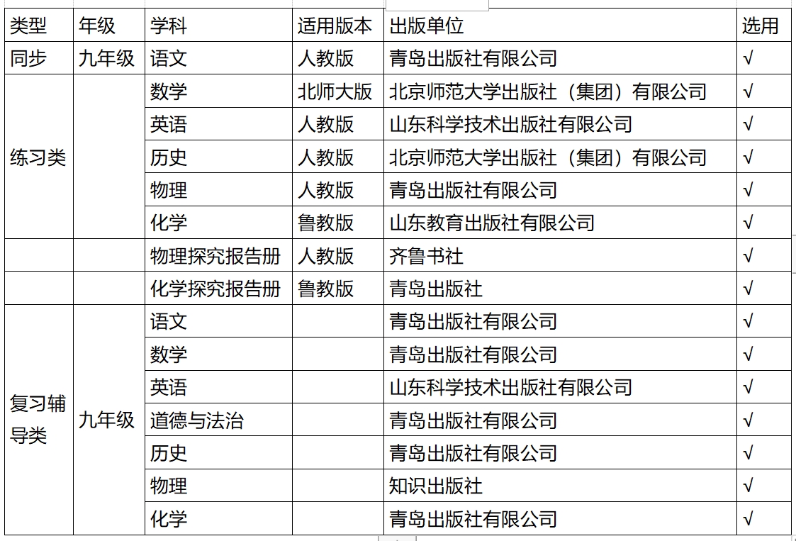 2023年青島實(shí)驗(yàn)初中教材教輔材料選用及使用目錄信息