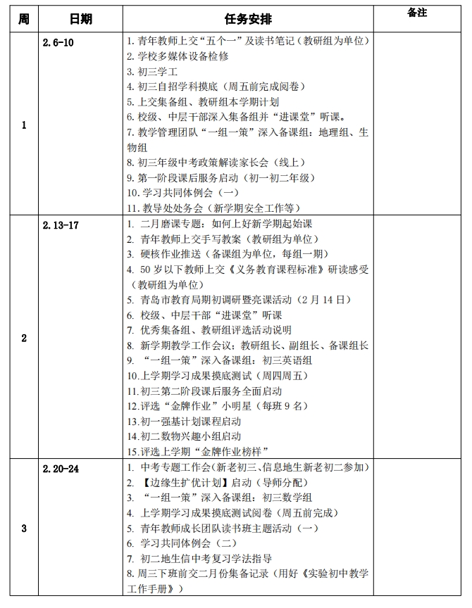 青島實(shí)驗(yàn)初中2022-2023學(xué)年度第二學(xué)期教學(xué)研究活動(dòng)安排表