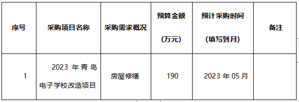 為便于供應(yīng)商及時(shí)了解政府采購(gòu)信息,根據(jù)《財(cái)政部關(guān)于開(kāi)展政府采購(gòu)意向公開(kāi)工作的通知》(財(cái)庫(kù)〔2020〕10號(hào))等有關(guān)規(guī)定,現(xiàn)將 青島電子學(xué)校 2023年 04(至)05 月采購(gòu)意向公開(kāi)如下: