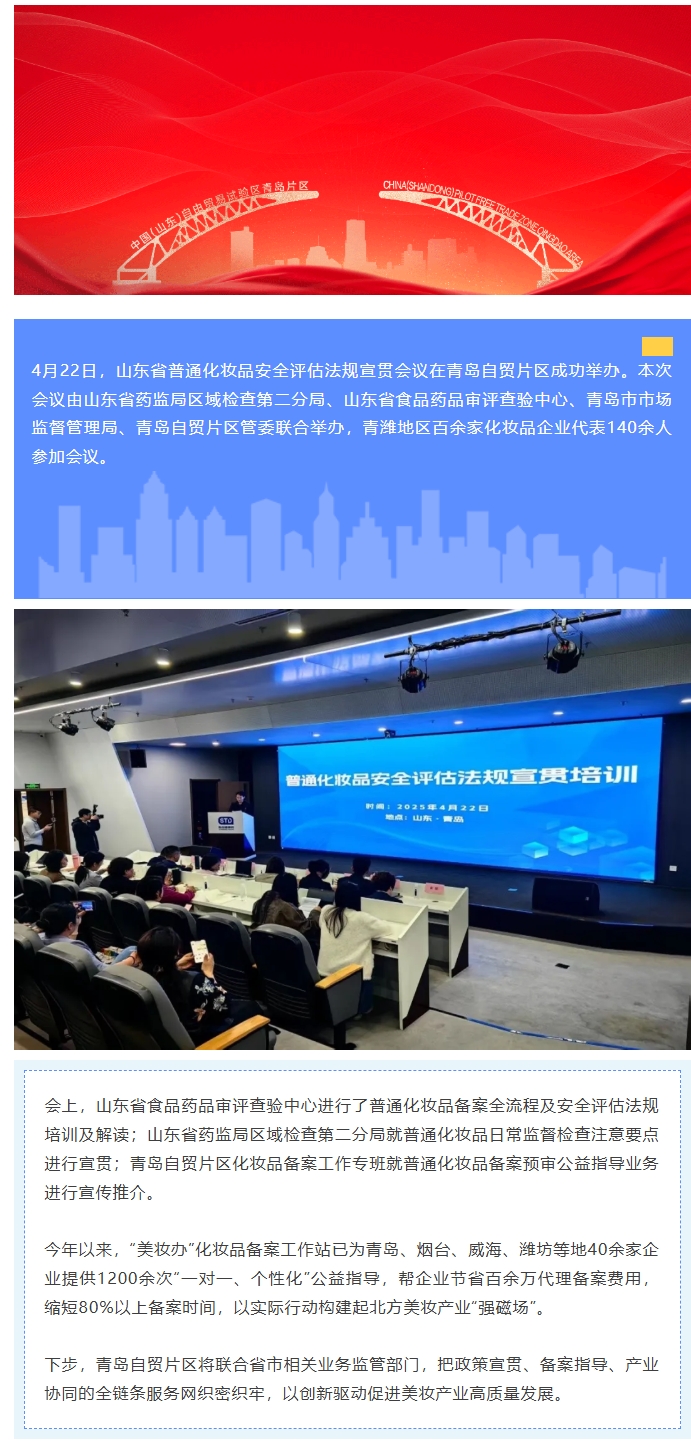 山東省普通化妝品安全評(píng)估法規(guī)宣貫會(huì)議在青島自貿(mào)片區(qū)成功舉辦