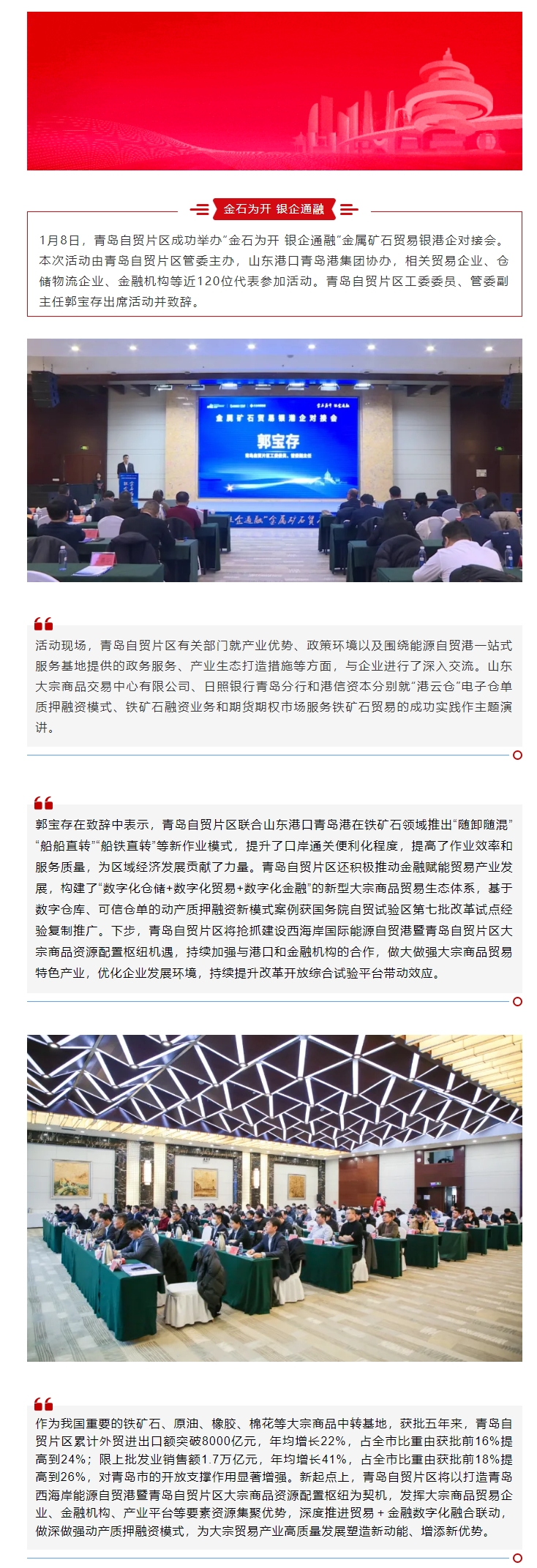 青島自貿(mào)片區(qū)舉辦“金石為開 銀企通融”金屬礦石貿(mào)易銀港企對接會