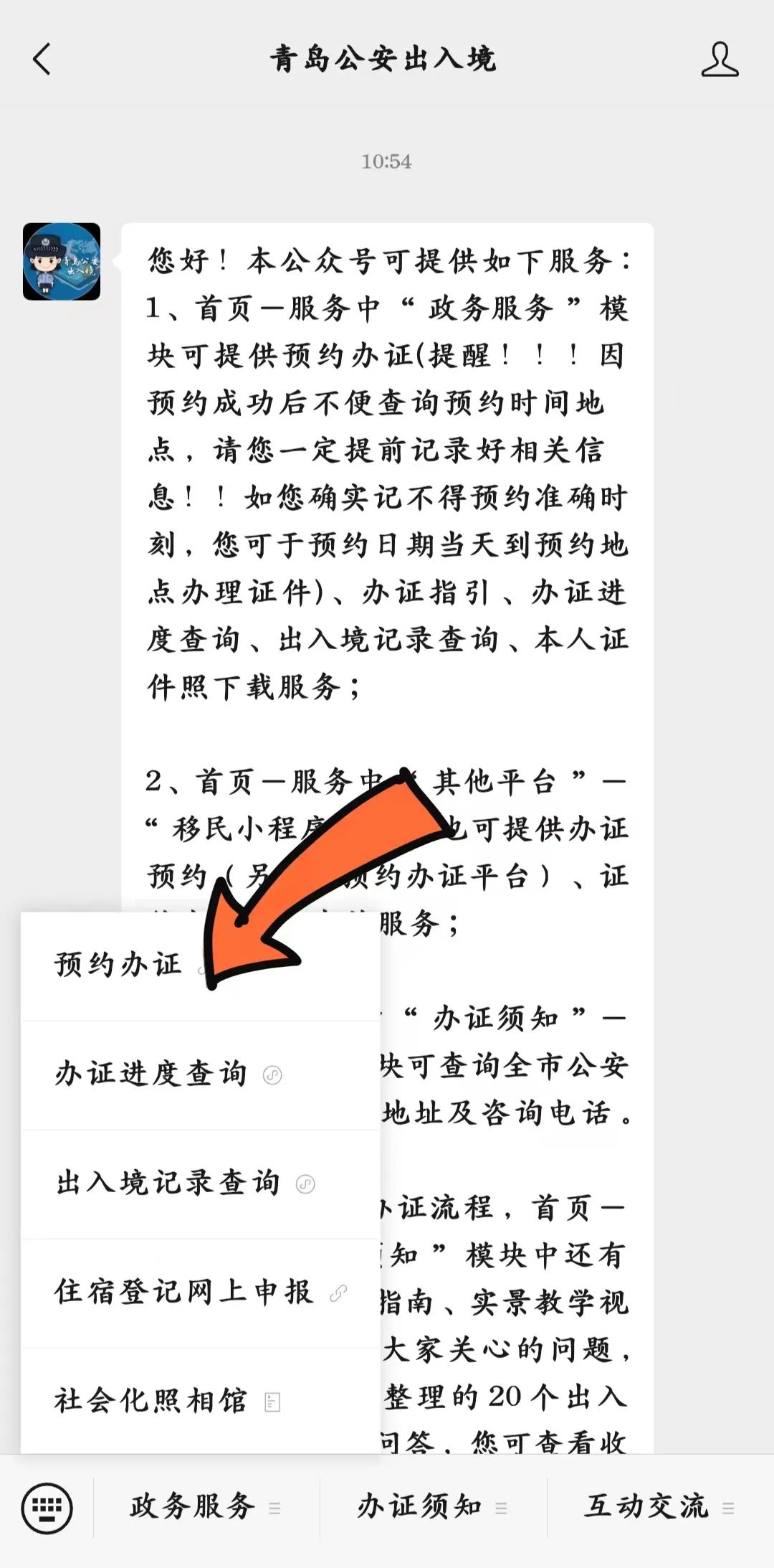 第一步:關(guān)注“青島公安出入境”微信公眾號(hào)