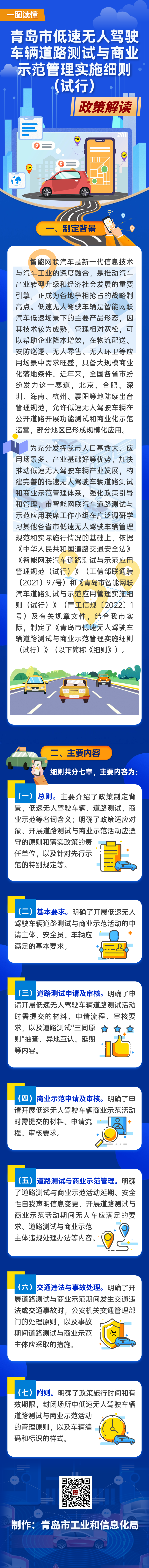 為充分發(fā)揮我市人口基數(shù)大、應(yīng)用場景多、產(chǎn)業(yè)基礎(chǔ)好等優(yōu)勢,加快推動(dòng)低速無人駕駛車輛產(chǎn)業(yè)發(fā)展,構(gòu)建完善的低速無人駕駛車輛道路測試和商業(yè)示范管理體系,強(qiáng)化政策引導(dǎo)和管理,市智能網(wǎng)聯(lián)汽車道路測試與示范應(yīng)用聯(lián)席工作小組在廣泛調(diào)研學(xué)習(xí)其他各省市低速無人駕駛車輛管理規(guī)范和實(shí)際施行情況的基礎(chǔ)上,依據(jù)《中華人民共和國道路交通安全法》《智能網(wǎng)聯(lián)汽車道路測試與示范應(yīng)用管理規(guī)范(試行)》(工信部聯(lián)通裝〔2021〕97號(hào))和《青島市智能網(wǎng)聯(lián)汽車道路測試與示范應(yīng)用管理實(shí)施細(xì)則(試行)》(青工信規(guī)〔2022〕1號(hào))及有關(guān)規(guī)章文件,結(jié)合我市實(shí)際,制定了《青島市低速無人駕駛車輛道路測試與商業(yè)示范管理實(shí)施細(xì)則(試行)》(青工信規(guī)〔2024〕1號(hào))(以下簡稱《細(xì)則》)。