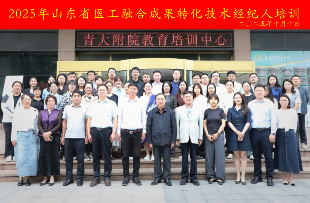 10月10日,由國(guó)家海洋技術(shù)轉(zhuǎn)移中心、青島國(guó)家技術(shù)轉(zhuǎn)移人才培養(yǎng)基地、山東省衛(wèi)生健康委員會(huì)醫(yī)療管理服務(wù)中心共同主辦的山東省醫(yī)工融合成果轉(zhuǎn)化技術(shù)經(jīng)紀(jì)人培訓(xùn)班在青島大學(xué)附屬醫(yī)院西海岸院區(qū)順利開(kāi)班,來(lái)自山東省各醫(yī)療機(jī)構(gòu)、醫(yī)工類(lèi)企業(yè)等40余名學(xué)員參加本次培訓(xùn)。青島求是工業(yè)技術(shù)研究院(浙江大學(xué)技術(shù)轉(zhuǎn)移中心青島分中心)、好醫(yī)工(山東)科技服務(wù)有限公司、青島大學(xué)附屬醫(yī)院具體承辦本次培訓(xùn)。山東省醫(yī)師協(xié)會(huì)會(huì)長(zhǎng)孫洪軍,青島大學(xué)附屬醫(yī)院黨委副書(shū)記、院長(zhǎng)李環(huán)廷,青島市高新技術(shù)產(chǎn)業(yè)促進(jìn)中心主任阮航分別為開(kāi)班儀式致辭。山東省工業(yè)和信息化廳科技處、西海岸新區(qū)新質(zhì)生產(chǎn)力促進(jìn)中心等相關(guān)領(lǐng)導(dǎo)、嘉賓列席參加。