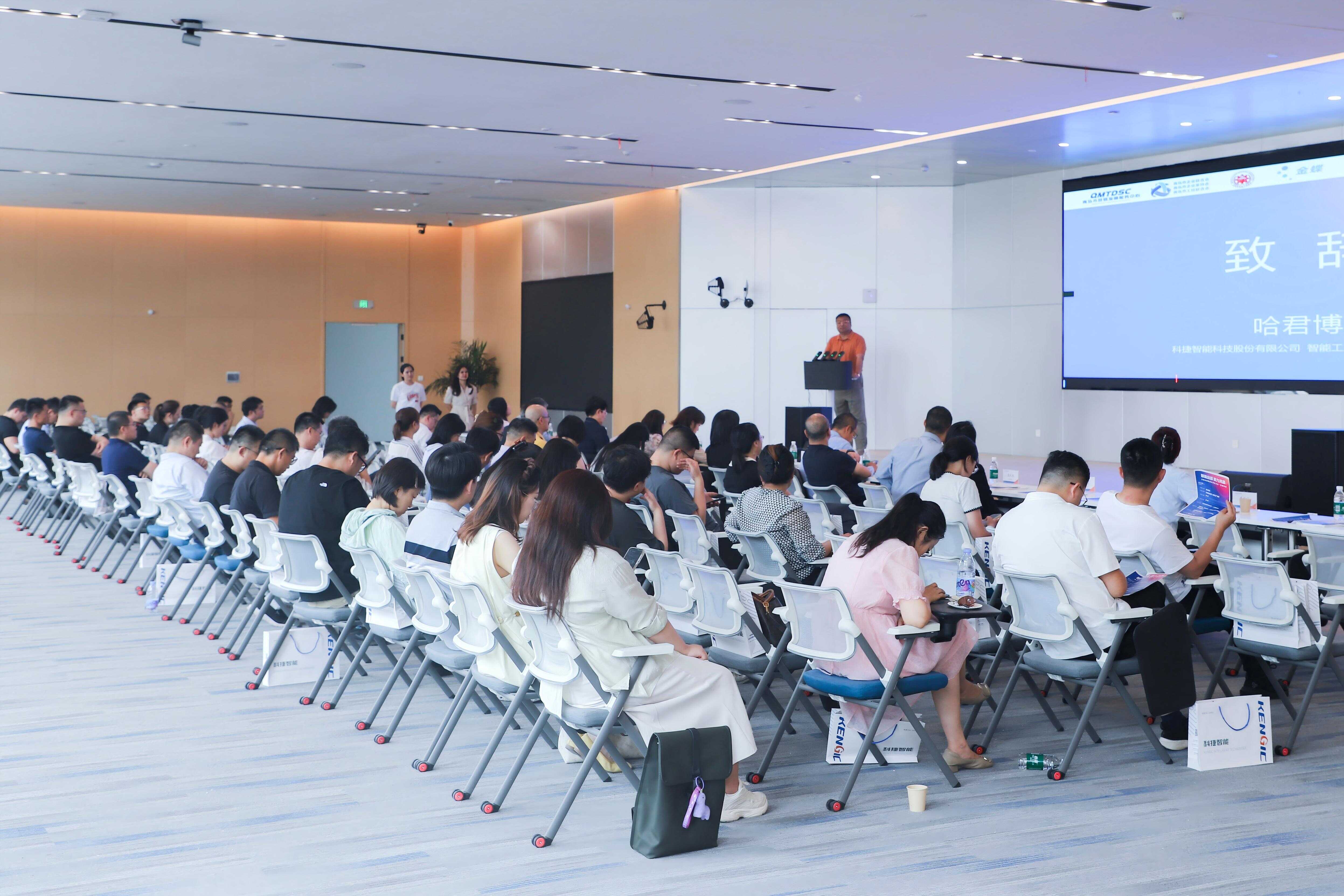 發(fā)揮智能制造標(biāo)桿企業(yè)對數(shù)字化轉(zhuǎn)型的示范引領(lǐng)作用,助力我市企業(yè)把握智能化出海新機(jī)遇,6月27日下午,青島市貿(mào)易發(fā)展服務(wù)中心組織開展了“走進(jìn)出海智能化明星企業(yè)---科捷智能”。本次活動(dòng)通過實(shí)地觀摩、案例分享與互動(dòng)研討,深度剖析內(nèi)外貿(mào)企業(yè)智能化轉(zhuǎn)型路徑,解碼智能工廠建設(shè)與數(shù)字化出海實(shí)踐,為企業(yè)提供可落地的解決方案。青島市貿(mào)易發(fā)展服務(wù)中心鄒曉飛副主任出席活動(dòng)并致辭?;顒?dòng)定向邀請了我市有出海布局或智能化轉(zhuǎn)型需求的50余家制造業(yè)企業(yè)的60余名高管人員參加。