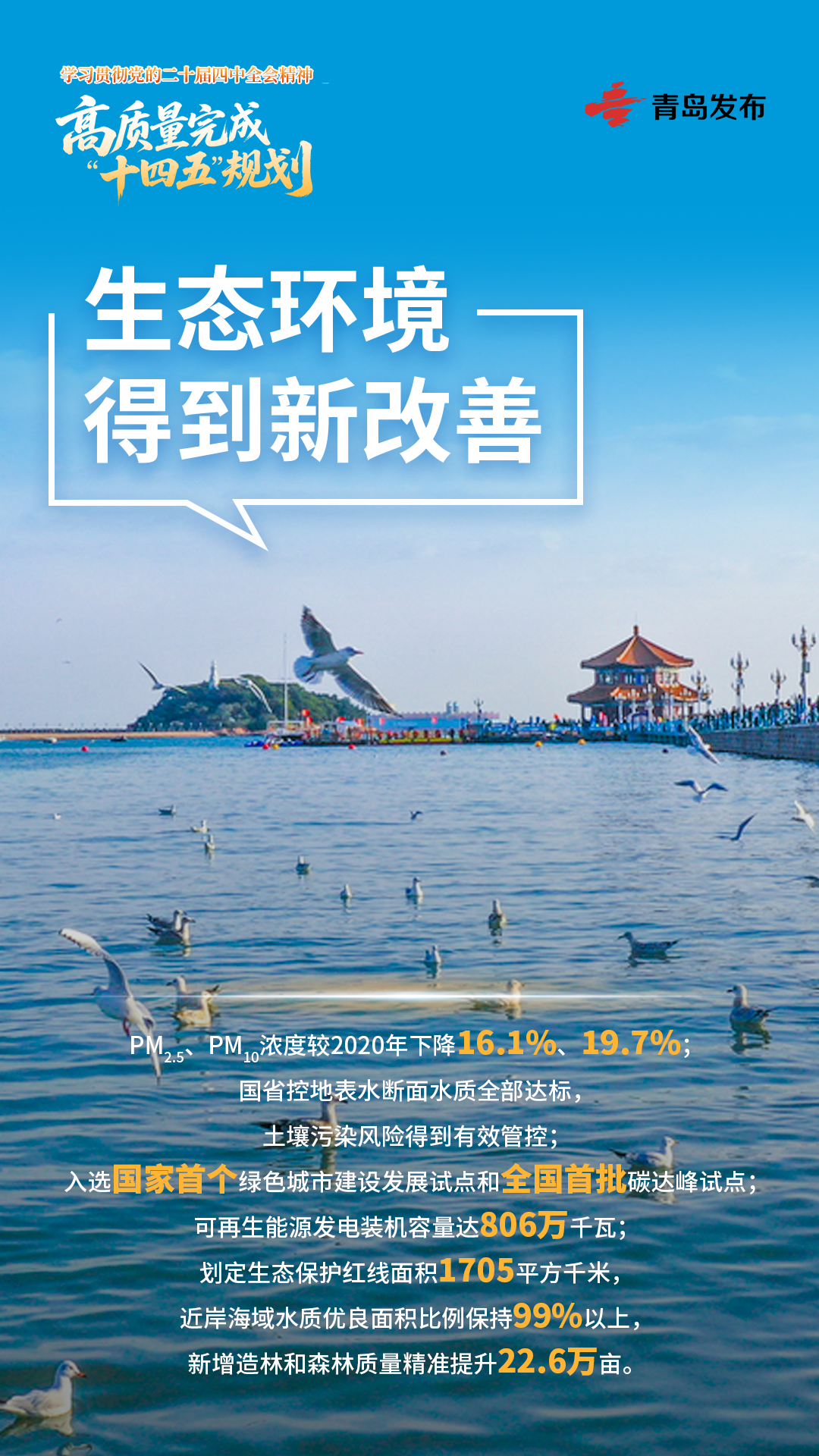 PM2.5、PM10濃度較2020年下降16.1%、19.7%,國(guó)省控地表水?dāng)嗝嫠|(zhì)全部達(dá)標(biāo),土壤污染風(fēng)險(xiǎn)得到有效管控,市民切身感受到青島的天更藍(lán)、水更清、環(huán)境更優(yōu)美。