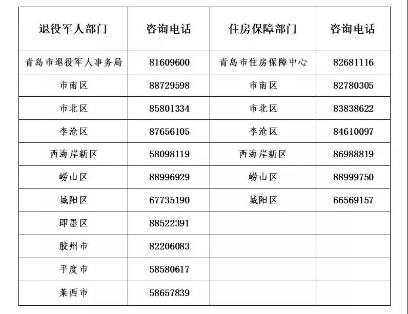 12.市、區(qū)退役軍人部門和住房保障部門咨詢電話: