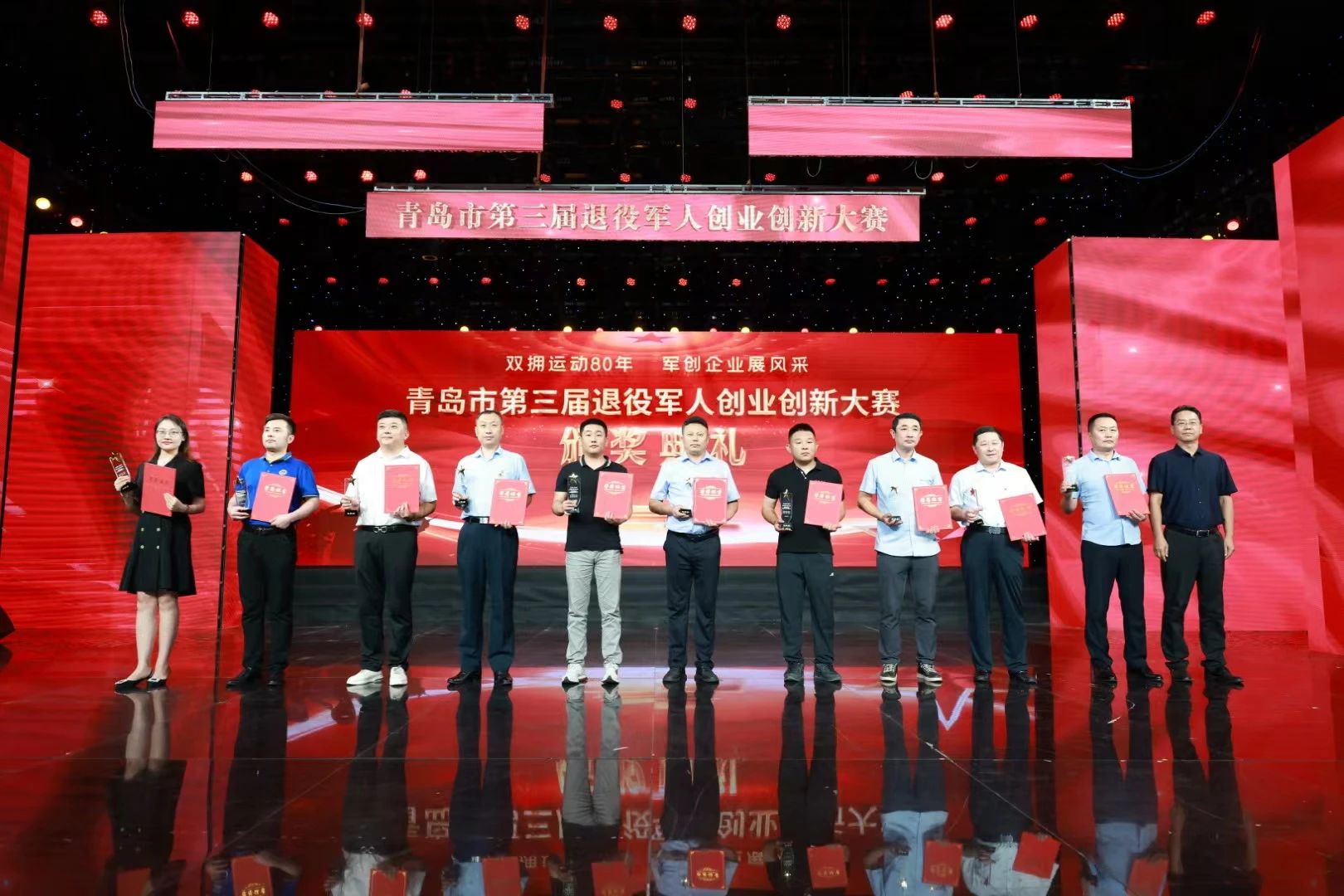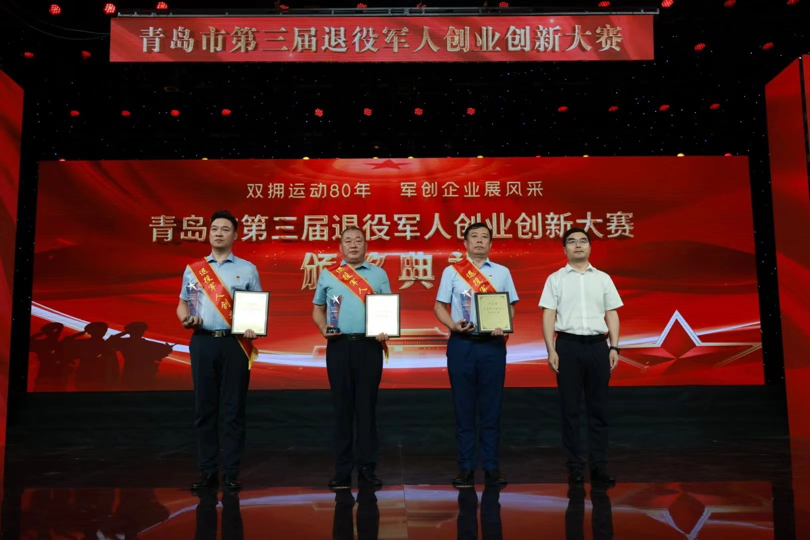 7月21日,青島市第三屆退役軍人創(chuàng)業(yè)創(chuàng)新大賽頒獎(jiǎng)典禮在青島市廣播電視臺(tái)800平米演播大廳隆重舉行。青島市退役軍人事務(wù)局、青島市財(cái)政局、青島市人力資源和社會(huì)保障局、青島市總工會(huì)等相關(guān)單位領(lǐng)導(dǎo)出席活動(dòng)。頒獎(jiǎng)典禮現(xiàn)場(chǎng)披紅掛彩、歡聲雷動(dòng)、座無(wú)虛席,備受期待的頒獎(jiǎng)儀式、精心編排的創(chuàng)業(yè)情景劇以及飽含激情的《軍創(chuàng)之歌》將整場(chǎng)活動(dòng)不斷推向高潮。