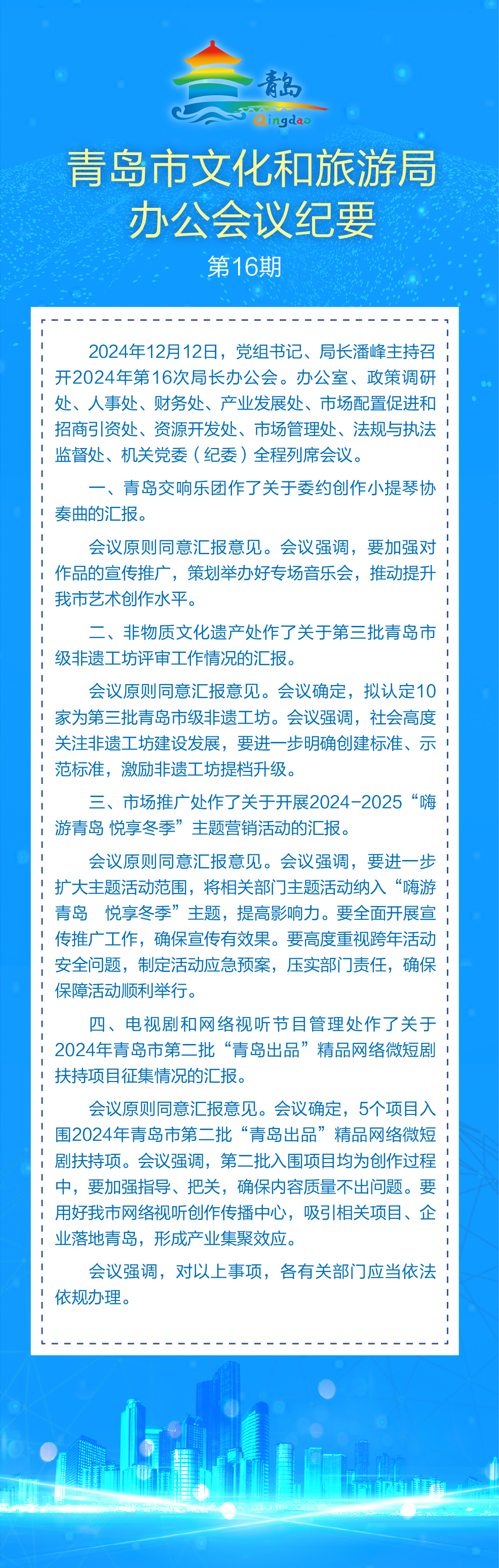 青島市文化和旅游局2024年第16次局長(zhǎng)辦公會(huì)