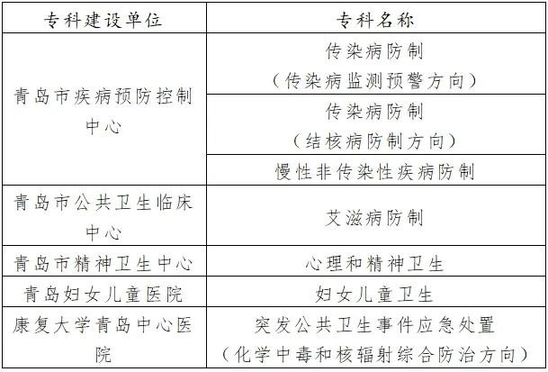 新增山東省公共衛(wèi)生重點(diǎn)??平ㄔO(shè)名單
