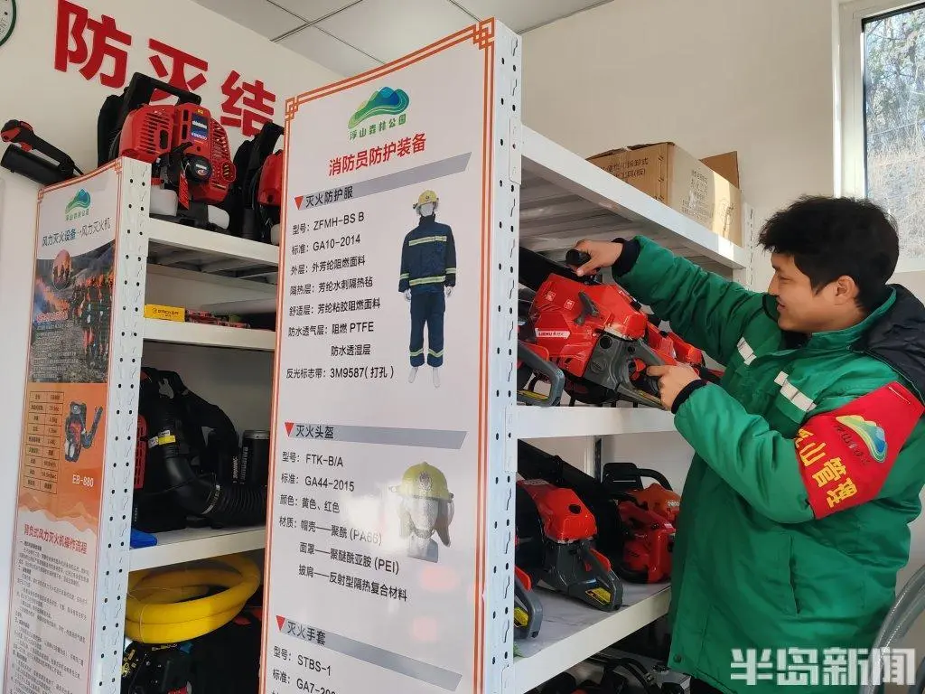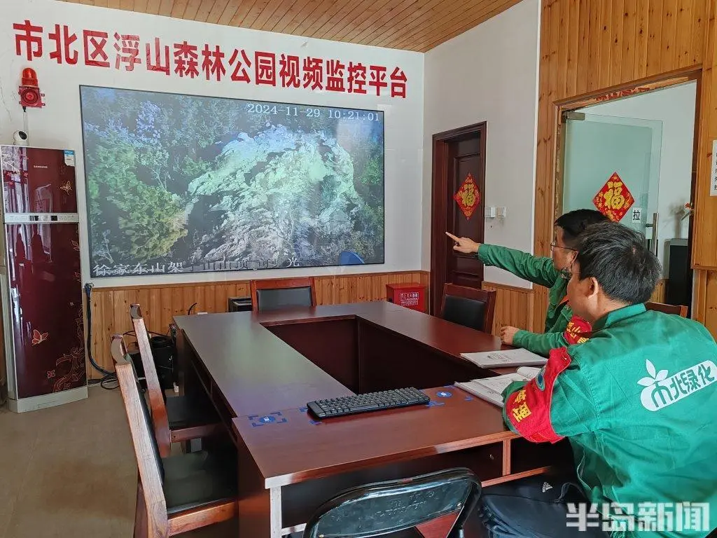 在監(jiān)控室,值班隊(duì)員們眼睛緊盯滾動(dòng)的大屏幕,山上、山頂?shù)谋O(jiān)控?cái)z像頭基本無(wú)死角的對(duì)入山人員、火情24小時(shí)監(jiān)測(cè)中,特別是熱成像探頭監(jiān)測(cè),一旦出現(xiàn)山火會(huì)第一時(shí)間發(fā)警報(bào)給值班室,值班人員會(huì)第一時(shí)間進(jìn)行處置。在監(jiān)控室一旁,就是隊(duì)員們的值班宿舍,床上一塊塊的“豆腐塊”被子格外亮眼。聚泰集團(tuán)綠化一子公司浮山項(xiàng)目部負(fù)責(zé)人趙鵬向記者介紹,進(jìn)入冬季防火季以來(lái),市北區(qū)浮山森林公園配備防火巡查人員60余人,嚴(yán)格實(shí)行24小時(shí)領(lǐng)導(dǎo)帶班制度,不間斷對(duì)綠道、封閉區(qū)域進(jìn)行巡查,全山設(shè)置12個(gè)防火點(diǎn)位,巡查人員每天進(jìn)行4遍的點(diǎn)位打卡,做到巡查無(wú)死角,安全無(wú)隱患。記者從聚泰集團(tuán)了解到,他們負(fù)責(zé)北嶺山、兒童公園等國(guó)有山林7處,協(xié)防浮山、雙山等集體山林5處,共計(jì)240余萬(wàn)平方米,此前已督促落實(shí)對(duì)防火器材的全面調(diào)試和檢修工作,對(duì)風(fēng)力滅火機(jī)、油鋸、割灌機(jī)等設(shè)備進(jìn)行了80余臺(tái)的檢修和維護(hù),確保設(shè)備能夠迅速響應(yīng)、高效處置火災(zāi)險(xiǎn)情。