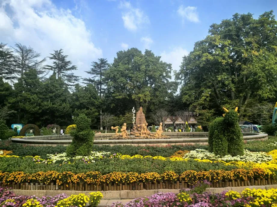 菊展區(qū)域覆蓋中山公園南門(mén)至西門(mén)環(huán)形路線,并延伸至動(dòng)物園北門(mén)。沿途設(shè)置了“菊韻流霞”“瑞獸呈祥”“菊藝長(zhǎng)廊”“時(shí)光院落”“菊韻雅集”等20余處主題花景,結(jié)合向日葵、一串紅、芙蓉菊等時(shí)令花卉,形成步移景異、處處皆畫(huà)的游覽動(dòng)線。