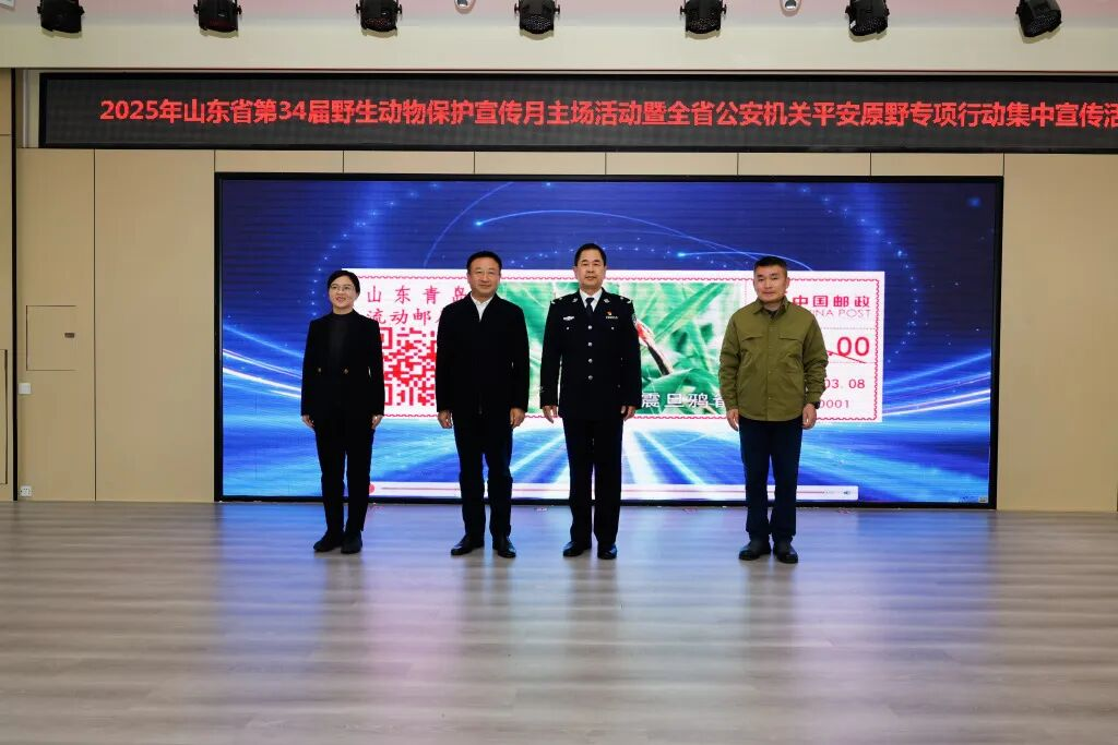 現(xiàn)場,山東省公安廳、自然資源廳及青島市政府分管負責(zé)同志分別致辭。與會人員觀看了城陽區(qū)野生動物保護宣傳片《我眼中的綠水青山》,夏莊街道中心幼兒園、棘洪灘街道錦繡小學(xué)、宏通小學(xué)的孩子們先后表演了《小鳥》《斑羚飛渡》《竹板一打說環(huán)?!返裙?jié)目,用童真表達對野生動物的關(guān)愛。嘉賓們?yōu)槌顷枀^(qū)自然教育基地揭牌,并發(fā)布青島市首張野生動物主題明信片。國家林業(yè)和草原局駐合肥專員辦事處、省公安廳、省自然資源廳、青島市政府、城陽區(qū)政府相關(guān)負責(zé)人及志愿者、學(xué)生代表共同推桿啟動活動。