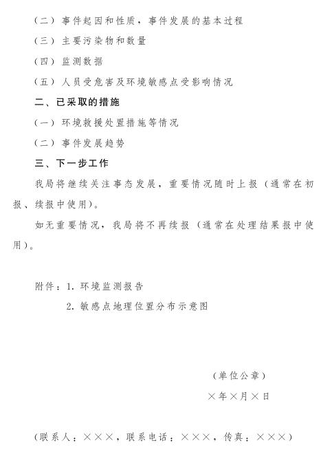 ?。?)根據(jù)環(huán)境應(yīng)急指揮部的決定,各部門、單位、應(yīng)急救援組下達應(yīng)急結(jié)束命令,解除應(yīng)急狀態(tài)。