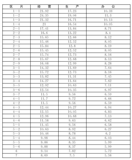 ?。ㄈζ髽I(yè)及經(jīng)營性用房,在房屋確權(quán)分類管理完成前,根據(jù)區(qū)片劃分,按不超過市場租金70%的標(biāo)準(zhǔn)調(diào)整,逐步過渡到市場租金。經(jīng)評估,經(jīng)營用房市場租金平均為22.15元/m2·月、生產(chǎn)用房17.74元/m2·月、辦公用房12.48元/m2·月(具體租金標(biāo)準(zhǔn)詳見附件3)。