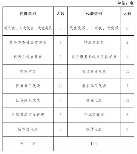 通過隨機抽取、組織推薦和自愿報名、組織遴選相結合的方式,邀請10000名市民代表分別在市級主會場以及區(qū)(市)、高新區(qū)分會場,現(xiàn)場聽取市政府部門負責人的述職報告。其中,每組述職報告會邀請市民代表2500人(含市級主會場100人)。