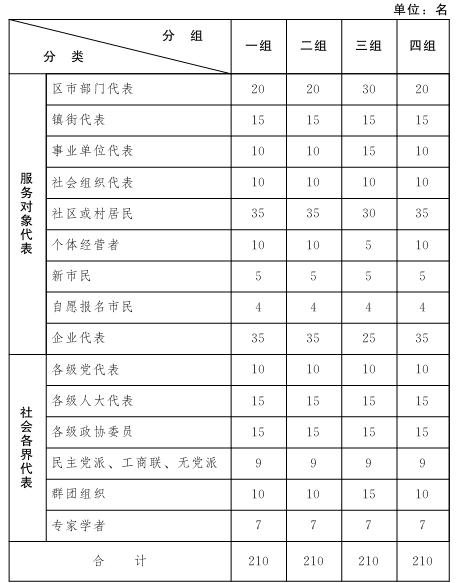 注:各分會場為210人,其中,市北區(qū)參照以上構成比例選取280人,黃島區(qū)選取380人,高新區(qū)選取60人。