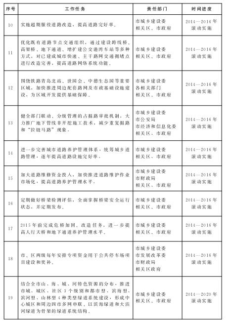 2.城市道路建設(shè)改造。以緩解城市交通擁堵為目標(biāo),加快建成環(huán)灣交通骨架路網(wǎng),圍繞以膠州灣為中心的海灣大橋和海底隧道“兩跨”,積極推進(jìn)新疆路高架等配套工程建設(shè),全面提升海灣大橋和海底隧道的交通功能;完善“功能明晰、通達(dá)有序”的環(huán)灣區(qū)域“四環(huán)”骨架道路體系,實(shí)現(xiàn)“青、黃、紅”城區(qū)快速交通銜接;加快快速路網(wǎng)建設(shè),優(yōu)化路網(wǎng)結(jié)構(gòu),形成大容量、高效率骨架路網(wǎng);加快打通、改造未實(shí)現(xiàn)規(guī)劃寬度的主干路,提升路網(wǎng)功能;逐步實(shí)施次干路和支路網(wǎng)加密,增強(qiáng)居民出行的便捷性;實(shí)施超期服役道路改造,提高道路完好率。優(yōu)化既有道路節(jié)點(diǎn)交通組織,通過建設(shè)跨線橋、高架橋、地下通道、增擴(kuò)建公交港灣車站等多種方式,對(duì)已建成城市快速、主干路網(wǎng)交通擁堵點(diǎn)進(jìn)行改造完善,提高道路網(wǎng)絡(luò)系統(tǒng)功能。圍繞鐵路青島北站、世園會(huì)、中德生態(tài)園等重要區(qū)域,加快推進(jìn)周邊配套路網(wǎng)建設(shè)和市政公用基礎(chǔ)設(shè)施建設(shè),為區(qū)域開發(fā)提供基礎(chǔ)保障。