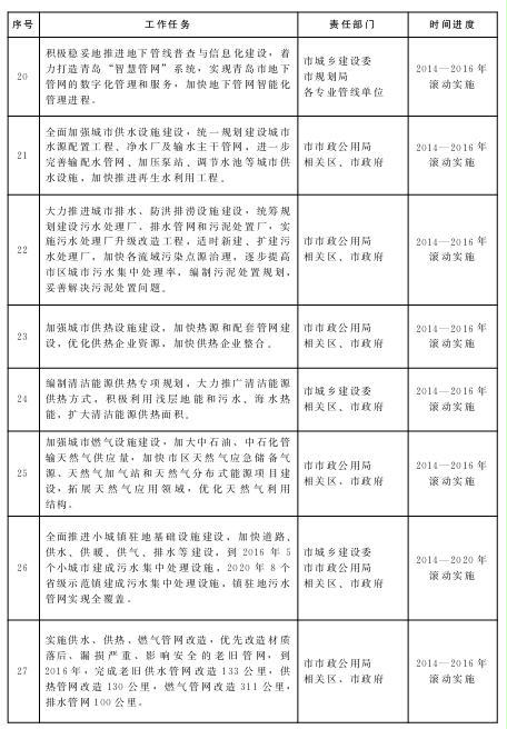 2.市政基礎(chǔ)設(shè)施建設(shè)。加強(qiáng)城市供水設(shè)施建設(shè),統(tǒng)一規(guī)劃建設(shè)城市水源配置工程、凈水廠及輸水主干管網(wǎng),進(jìn)一步完善輸配水管網(wǎng)、加壓泵站、調(diào)節(jié)水池等城市供水設(shè)施。加快推進(jìn)再生水利用工程,到2016年,城市供水普及率達(dá)到100%,水質(zhì)綜合合格率達(dá)到100%,再生水利用率達(dá)到40%。加強(qiáng)城市排水、防洪排澇設(shè)施建設(shè),統(tǒng)籌規(guī)劃建設(shè)污水處理廠、排水管網(wǎng)和污泥處置廠。實(shí)施污水處理廠升級(jí)改造工程,適時(shí)新建、擴(kuò)建污水處理廠,加快各流域污染點(diǎn)源治理,逐步提高市區(qū)城市污水集中處理率,編制污泥處置規(guī)劃,妥善解決污泥處置問題,到2016年,城市污水集中處理率達(dá)到95%以上,城市污泥無害化處置率達(dá)到85%以上。加強(qiáng)城市供熱設(shè)施建設(shè),加快熱源和配套管網(wǎng)建設(shè),優(yōu)化供熱企業(yè)資源,加快供熱企業(yè)整合,編制清潔能源供熱專項(xiàng)規(guī)劃,大力推廣清潔能源供熱方式,積極利用淺層地能和污水、海水熱能,擴(kuò)大清潔能源供熱面積,到2016年,市區(qū)集中供熱普及率達(dá)到80%以上。加強(qiáng)城市燃?xì)庠O(shè)施建設(shè),加大中石油、中石化管輸天然氣供應(yīng)量,加快市區(qū)天然氣應(yīng)急儲(chǔ)備氣源、天然氣加氣站和天然氣分布式能源項(xiàng)目建設(shè),拓展天然氣應(yīng)用領(lǐng)域,優(yōu)化天然氣利用結(jié)構(gòu),到2016年,城市管道燃?xì)鈿饣蔬_(dá)到90%,天然氣在一次能源中的消費(fèi)比例達(dá)到5%,市區(qū)燃?xì)馄占奥蔬_(dá)到100%,縣城及小城鎮(zhèn)燃?xì)馄占奥蔬_(dá)到80%。全面推進(jìn)小城鎮(zhèn)駐地基礎(chǔ)設(shè)施建設(shè),加快道路、供水、供暖、供氣、排水等建設(shè),到2016年5個(gè)小城市建成污水集中處理設(shè)施,到2020年8個(gè)省級(jí)示范鎮(zhèn)建成污水集中處理設(shè)施,鎮(zhèn)駐地污水管網(wǎng)實(shí)現(xiàn)全覆蓋。加快城鎮(zhèn)污水處理廠新擴(kuò)改工程建設(shè),滿足區(qū)域污水增量的處理需求。