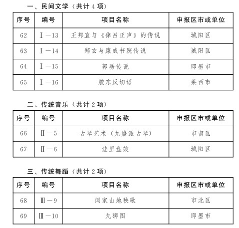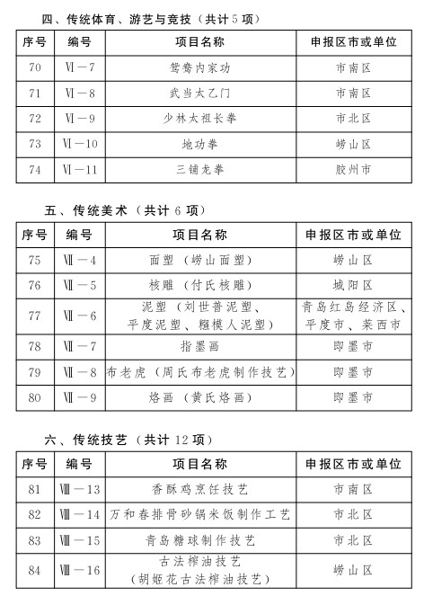 青島市第四批市級非物質(zhì)文化遺產(chǎn)