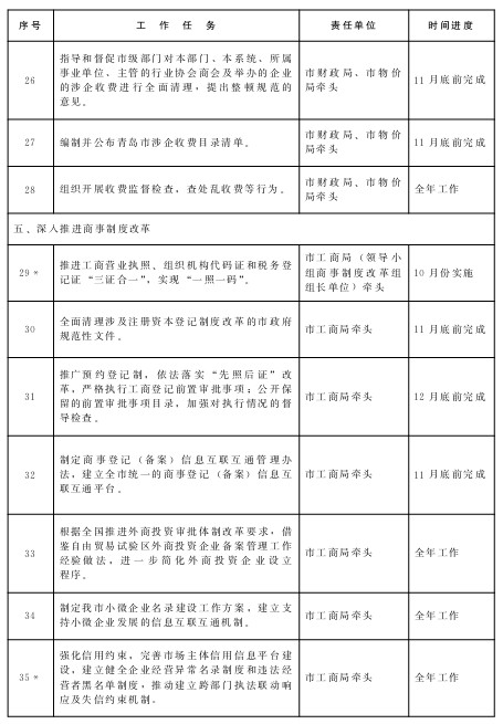 推進工商營業(yè)執(zhí)照、組織機構(gòu)代碼證和稅務(wù)登記證“三證合一”,實現(xiàn)“一照一碼”。全面清理涉及注冊資本登記制度改革的市政府規(guī)章和規(guī)范性文件。推廣預(yù)約登記制,依法落實“先照后證”改革,嚴(yán)格執(zhí)行工商登記前置審批事項;公開保留的前置審批事項目錄,加強對執(zhí)行情況的督導(dǎo)檢查;研究制定商事登記(備案)信息互聯(lián)互通管理辦法,建立全市統(tǒng)一的商事登記(備案)信息互聯(lián)互通平臺。根據(jù)全國推進外商投資審批體制改革要求,借鑒自由貿(mào)易試驗區(qū)外商投資企業(yè)備案管理工作經(jīng)驗做法,進一步簡化外商投資企業(yè)設(shè)立程序。建設(shè)小微企業(yè)名錄,建立支持小微企業(yè)發(fā)展的信息互聯(lián)互通機制,實現(xiàn)政策集中公示、扶持申請導(dǎo)航、享受扶持信息公示等。強化信用約束,完善市場主體信用信息平臺建設(shè),建立健全企業(yè)經(jīng)營異常名錄制度和違法經(jīng)營者黑名單制度,推動建立跨部門執(zhí)法聯(lián)動響應(yīng)及失信約束機制。貫徹落實國家修訂的《企業(yè)經(jīng)營范圍登記管理規(guī)定》,提出我市落實的措施意見。根據(jù)國家和省部署,落實對個體工商戶、未開業(yè)企業(yè)、無債權(quán)債務(wù)企業(yè)實行簡易注銷程序,實現(xiàn)市場主體退出便利化。加快推進電子營業(yè)執(zhí)照和企業(yè)登記全程電子化,盡快實現(xiàn)以電子營業(yè)執(zhí)照為支撐的網(wǎng)上申請、網(wǎng)上受理、網(wǎng)上審核、網(wǎng)上發(fā)照和網(wǎng)上公示,切實提高市場主體登記管理的信息化、便利化和規(guī)范化水平。