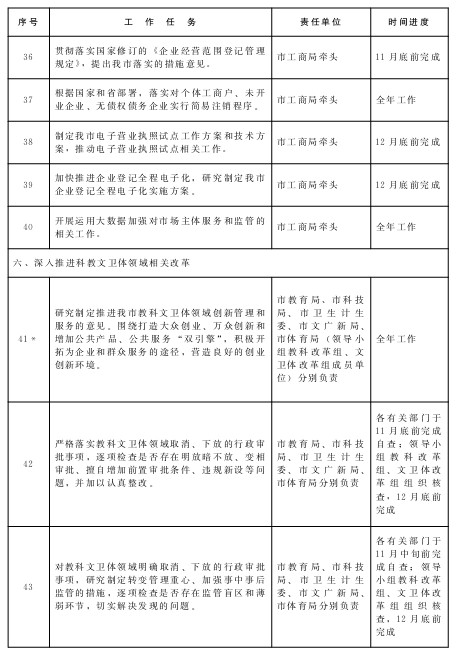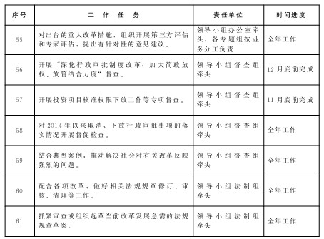 注:領(lǐng)導(dǎo)小組辦公室要對以上工作任務(wù)完成情況進行督辦。其中標(biāo)“*”號者為重點督辦事項。牽頭部門和各專題組、功能組組長單位要及時向領(lǐng)導(dǎo)小組辦公室報送工作進展情況。