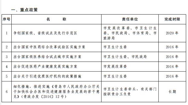 青島市健康服務業(yè)創(chuàng)新發(fā)展重點政策和重點項目