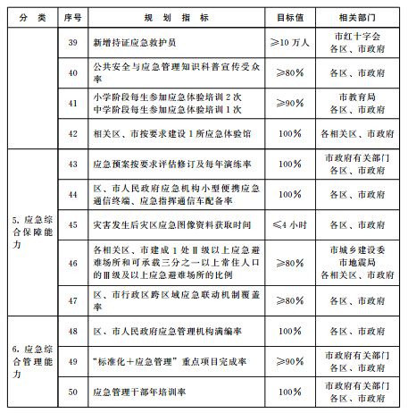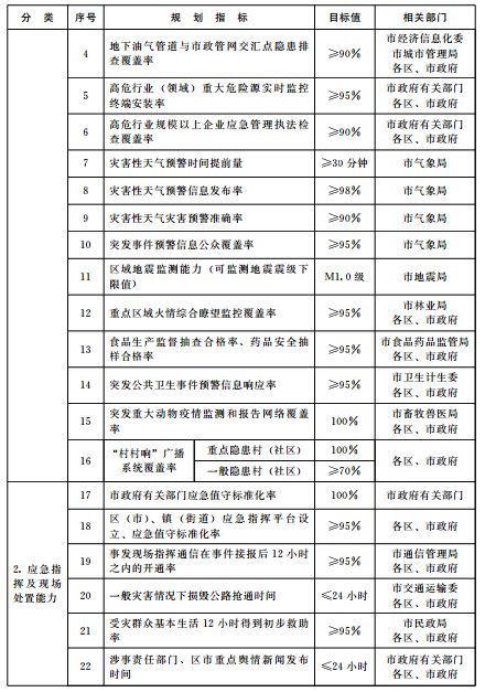 應(yīng)急體系建設(shè)“十三五”規(guī)劃指標(biāo)及目標(biāo)值