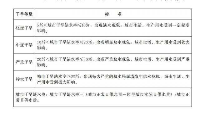 9.1.4設(shè)區(qū)城市(指設(shè)區(qū)的市主城區(qū))干旱等級判定標準