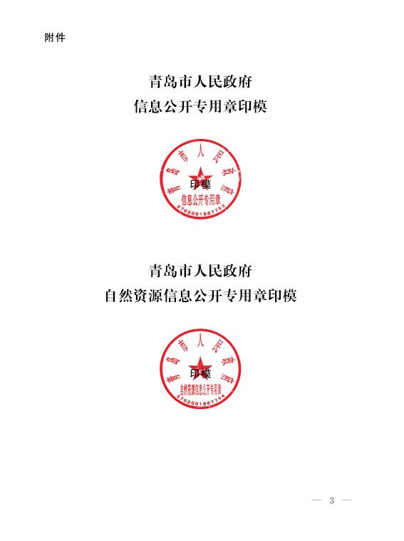 附件:青島市人民政府信息公開專用章、青島市人民政府自然資源信息公開專用章印模