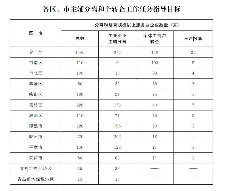2.各區(qū)、市主輔分離和個(gè)轉(zhuǎn)企工作任務(wù)指導(dǎo)目標(biāo)