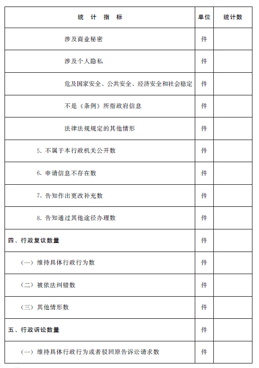 38.告知作出更改補充數(shù):指對公民、法人或其他組織申請公開的政府信息,因申請內(nèi)容不明確,告知其作出更改、補充的答復件數(shù)。