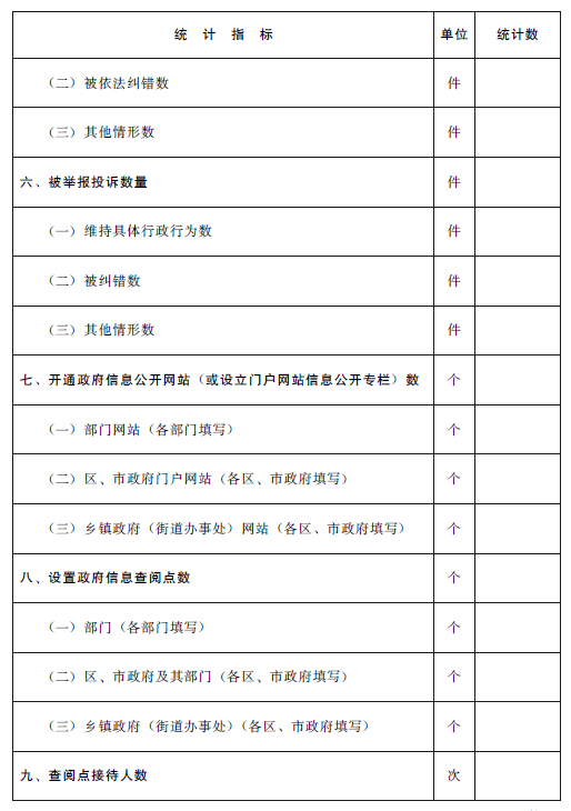 50.被糾錯數(shù):指已辦結的政府信息公開舉報投訴中撤銷、變更具體行政行為或確認具體行政行為違法、責令重新作出具體行政行為的件數(shù)。