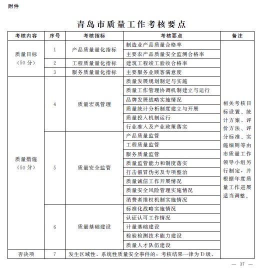 附件:青島市質(zhì)量工作考核要點(diǎn)