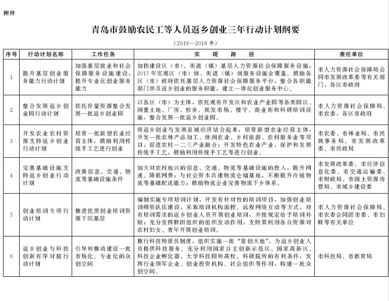 附件:青島市鼓勵(lì)農(nóng)民工等人員返鄉(xiāng)創(chuàng)業(yè)三年行動(dòng)計(jì)劃綱要