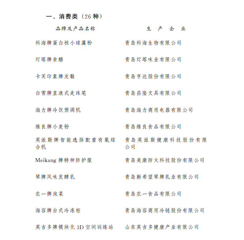 2017年,廣大企業(yè)充分發(fā)揮品牌引領(lǐng)作用,推動(dòng)制造業(yè)品牌建設(shè)高端化,以新供給提升競爭發(fā)展新動(dòng)能,一批技術(shù)含量高、市場競爭力強(qiáng)、品牌美譽(yù)度高,以及“專、精、特、新”突出的產(chǎn)品和服務(wù)脫穎而出。經(jīng)過企業(yè)申報(bào)、區(qū)(市)推薦、專家評審以及消費(fèi)者投票,市政府同意青島科海生物有限公司的“科海牌蛋白核小球藻粉”等64種產(chǎn)品、青島盛世奧海文化產(chǎn)業(yè)股份有限公司的“大牌成就品牌”等11個(gè)服務(wù)品牌,新認(rèn)定為“青島名牌”,現(xiàn)予以公布。