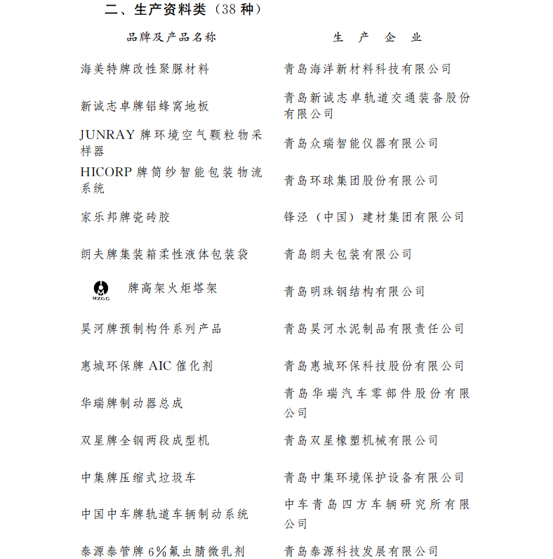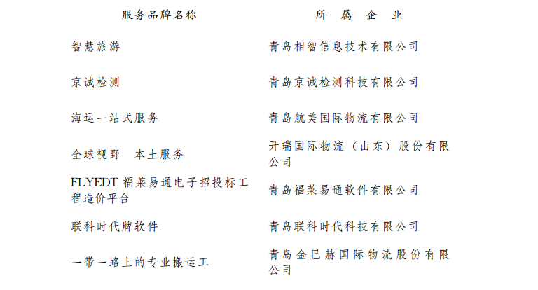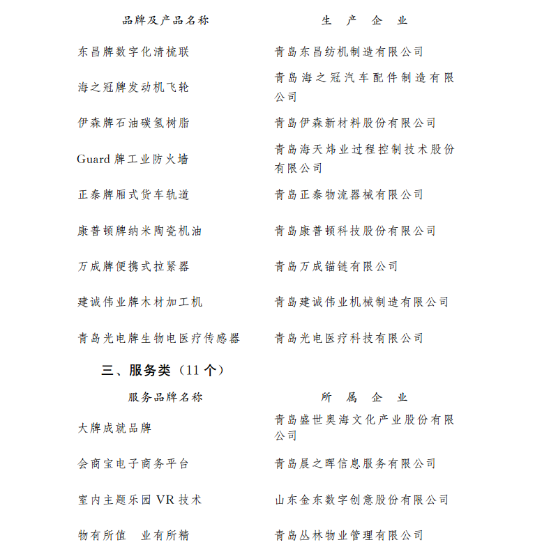 2017年度新認(rèn)定“青島名牌”名單