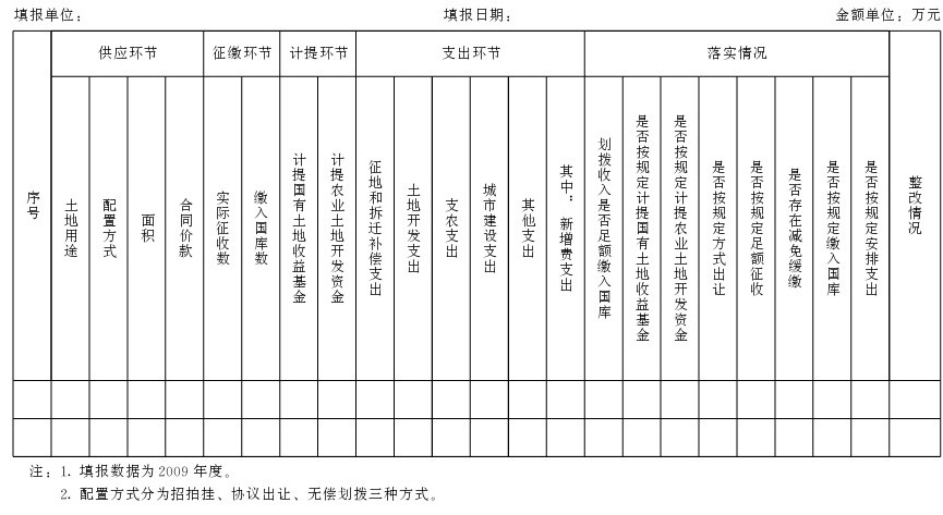 ?。ㄊ┩晟仆恋爻鲎屖罩Ыy(tǒng)計制度。土地出讓收支統(tǒng)計報表,是反映土地市場運行情況和土地出讓收支政策執(zhí)行情況的重要途徑,是制定和完善相關(guān)政策的重要依據(jù),也是查找問題、強化日常管理的工作平臺。各級要認真做好土地出讓收支統(tǒng)計工作,明確統(tǒng)計報表填報部門,落實填報責任。認真執(zhí)行財政部、國土資源部、中國人民銀行《關(guān)于建立國有土地收支統(tǒng)計報表體系的通知》(財綜〔2007〕29號)、《關(guān)于加強國有土地收支統(tǒng)計報表編報工作的通知》(財綜〔2010〕10號)的有關(guān)規(guī)定。財政、國土資源管理部門和人民銀行分支機構(gòu)要分別做好報表數(shù)據(jù)審核工作,確保數(shù)據(jù)準確,共同做好統(tǒng)計報表填報工作。財政部門要及時匯總本地區(qū)土地出讓收支報表,確保按時報送上級財政、國土資源管理部門、人民銀行分支機構(gòu)。同時,各區(qū)(市)財政、國土資源管理部門要充分發(fā)揮統(tǒng)計報表作用,及時研究分析本地區(qū)土地資源管理運行情況和土地出讓收支政策執(zhí)行情況,不斷完善政策制度,強化管理。