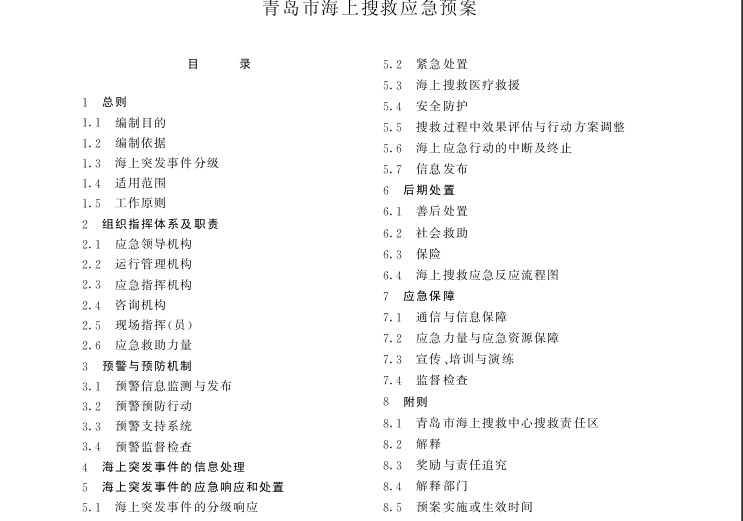 市政府辦公廳2006年6月19日印發(fā)的《青島市海上搜救應急預案》(青政辦發(fā)〔2006〕52號)同時廢止?! ?br/> 青島市海上搜救應急預案.jpg