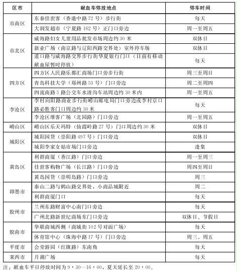 4.青島市獻(xiàn)血車停放地點(diǎn)和時(shí)間安排
