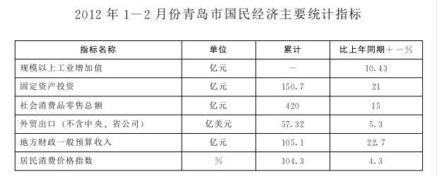 2012年1-2月份青島市國民經(jīng)濟主要統(tǒng)計指標